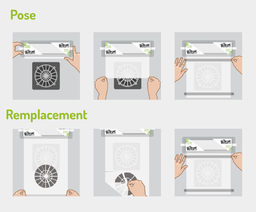 Le système breveté Velum, spécifique aux machines électroniques, est appliqué à l’extérieur, directement au-dessus de la grille d’entrée du système de ventilation et de refroidissement de l’unité de production ou du moteur ; après l’application, Velum recueille et retient les brouillards huileux dans son tissu à mailles et garantit l’entrée normale d’air frais et propre à l’intérieur de la machine, en protégeant le filtre interne.
